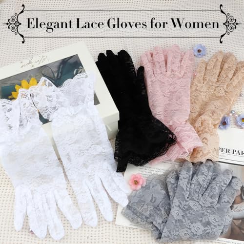 Fabric type: LaceCare instructions: Hand Wash OnlyOrigin: Imported【Material and Size】Lace gloves are made of elastic lace, soft and smooth with a delicate floral pattern. It is cozy to wear, skin-friendly and breathable, making it perfect for women of all ages. Lace gloves women are a size fits all and measure approximately 24.5 cm x 12 cm / 9.64 in * 4.72 in.【Great Gifts for Women】Lace gloves can be given to mom, grandma, sisters, female friends and female colleagues as Mother's Day gifts, Christmas gifts, New Year gifts, Halloween gifts, birthday gifts, mom birthday gifts, grandma birthday gifts.She can use it as sunblock gloves, bridal gloves, wedding gloves,opera evening party gloves,prom gloves and Christmas Halloween Cosplay Gloves.【Multiple Colors】:The lace gloves are available in a wide range of colors, such as white, beige, pink, black, grey-blue and many other colors to choose from, adapting to your various needs. Lace gloves can be used as tea party gloves, prom gloves, wedding gloves, ladies dress gloves, princess gloves, summer gloves, a gift for grandma, mom, sister, friends, female colleagues. These lace gloves can be worn with dresses, wedding dresses, or with blouses, formal wear and other everyday outfits.【Suitable Occasions】: This lace glove is suitable for weddings, birthday parties, camellia parties, various banquets, various dance parties, Halloween costumes, bridal parties, concerts, holiday operas, nightclubs, band performances, cosplay costumes and many other occasions. Wearing elegant lace gloves will make you stand out from the crowd and show off the elegance of a woman.【Tips】: Try to hand wash and dry naturally. If you want to wash in a washing machine, use a laundry bag for protection. Perfect for everyday use. supreme materials and excellent craftsmanship ensure long-lasting durability.