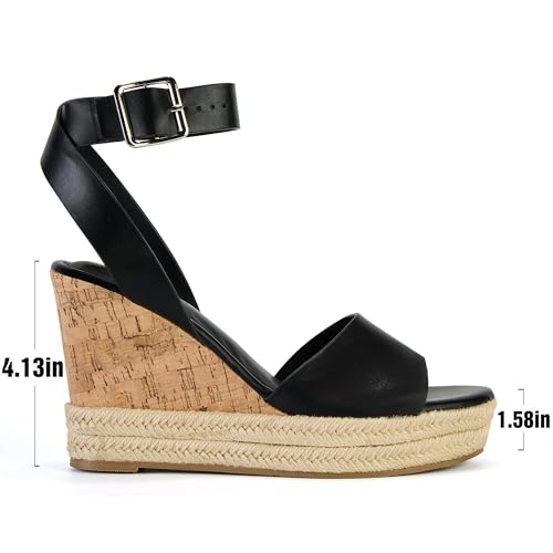 Sole material: Synthetic RubberOuter material: CottonClosure type: BuckleChic Espadrille Design: These espadrille wedge sandals feature a natural jute-wrapped platform paired with a cork wedge heel, adding a touch of effortless style to any outfit. Perfect for pairing with dresses, jeans, skirts, or shorts for a trendy summer look.All-Day Comfort & Support: Designed with a 4.13-inch wedge and 1.58-inch platform, these sandals offer arch support and a cozy slope for enhanced stability and balance. Enjoy added height without compromising on comfort.Adjustable Ankle Strap: The buckle ankle strap allows for a customizable fit, while the crisscross faux leather straps provide extra support and keep your feet secure for confident all-day wear.Non-Slip, Durable Sole: Crafted with a textured, non-slip outsole, these open-toe wedge sandals provide excellent traction on various surfaces, ensuring safe and steady steps wherever you go.Versatile for Any Occasion: Whether you're dressing up for a garden party, wedding, vacation, or a casual day out, these cork wedge sandals effortlessly transition from day to night, adding elegance to any look. Perfect for spring and summer events. Perfect for everyday use. supreme materials and excellent craftsmanship ensure long-lasting durability.