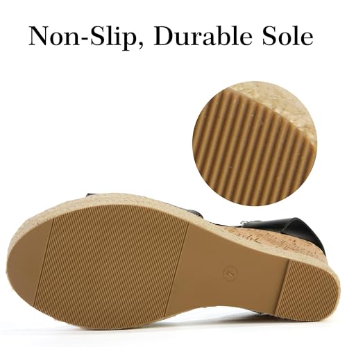 Yavero Women's Espadrille Wedge Sandals Open Toe Platform Sandals with Ankle Strap trendy Cork Wedges for Summer