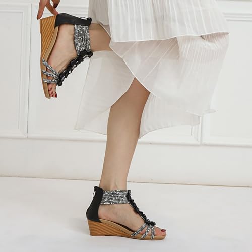 Sole material: RubberOuter material: SyntheticClosure type: ZipWater resistance level: Not Water ResistantSize Tips:With feet length of23cm/9.06,choose sizeUS6/EU36/UK4,factory size is36Boho Chic & plush Step in style with cushioned boho gladiator sandals featuring rhinestone beads and breathable straps for all-day summer comfort.Secure Slip-Resistant Wedge Walk confidently on 3-inch slip-resistant wedge heels with textured soles, perfect for beach weddings or cobblestone streets.Easy Back Zipper & Adjustable Fit Quick zip-up closure and adjustable ankle straps ensure a customized, snug fit β no buckling required.Dressy Bohemian Footwear Elevate your outfit with Roman-inspired cage details and sparkling beads β ideal for festivals, vacations, or date nights. Perfect for everyday use. first-class materials and excellent craftsmanship ensure long-lasting durability.