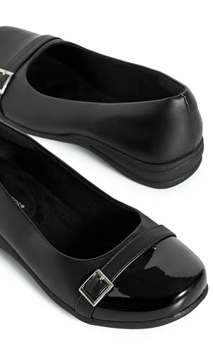 Origin: ImportedSole material: CorkOuter material: Faux SuedeClosure type: Pull-OnEffortless Elegance: The Comfort Julie Flat combines style and comfort with a round glossy toe and chic faux buckle detail, perfect for any workday outfit.Perfect Fit: Designed for women seeking wide fit shoes, these flats provide all-day comfort with a spacious and snug fit.Slip-On Convenience: Enjoy the ease of slip-on flats with a soft faux leather fabrication that offers quick and sophisticated wear.Cushioned Comfort: Experience luxury with a padded sole, ensuring these comfortable flats keep you supported on even the longest days. Perfect for everyday use. first-class materials and excellent craftsmanship ensure long-lasting durability.