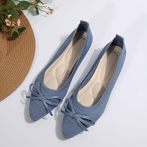 Flats for Women: Dressy Pointed Toe Ballet Shoes,cozy Bow Knit Mesh Slip On Dance Ball Business Casual