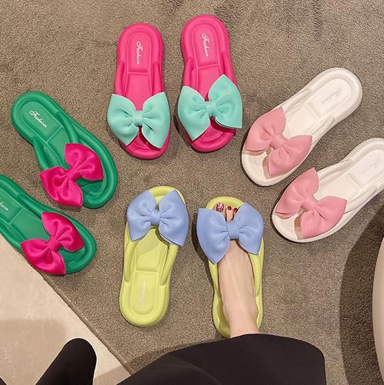 Bow Sandals for Women Y2K Flip Flop Aesthetic Kawaii Beach Slippers Cute Slip on Flat Summer Comfort Walking Shoes Outdoor Indoor Shower Slippers