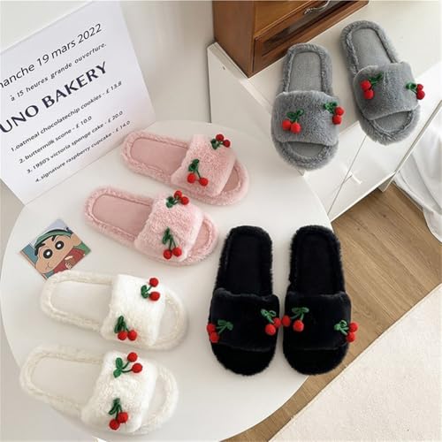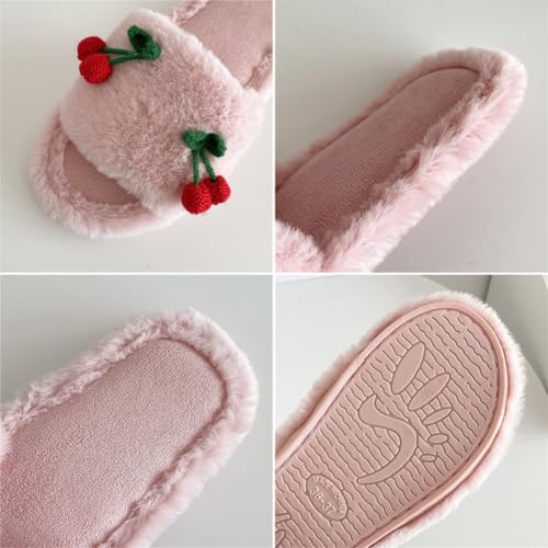 in-demand ! Rungion Womens Home comfortable Cherry Plush Slippers All-Season Open-Toe Non-Slip House Slides plush Sole Cute Indoor Outdoor Sandals Shose