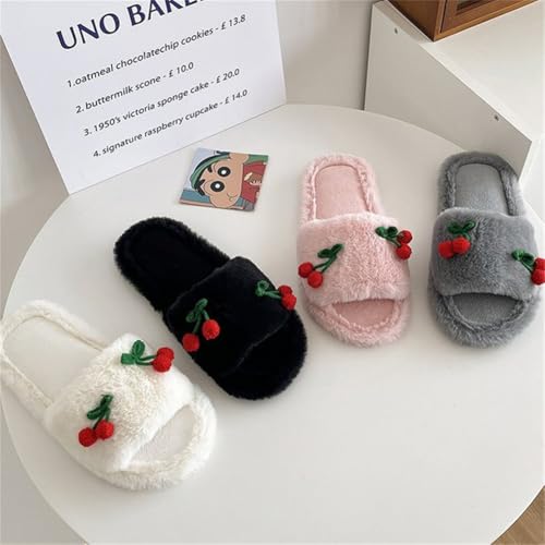 More information about Rungion Womens Home comfortable Cherry Plush Slippers All-Season Open-Toe Non-Slip House Slides smooth Sole Cute Indoor Outdoor Sandals Shose