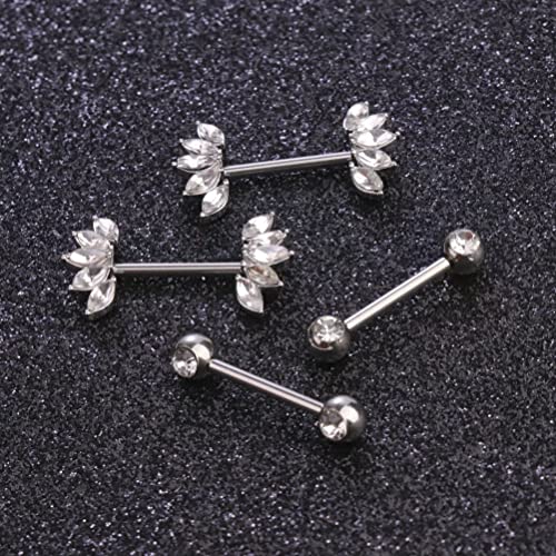 Besteel 8 Pairs Nipple Rings 14G Stainless Steel Nipplerings CZ Heart Butterfly Ball Tongue Barbell Rings Retainer Body Piercing Jewelry for Women