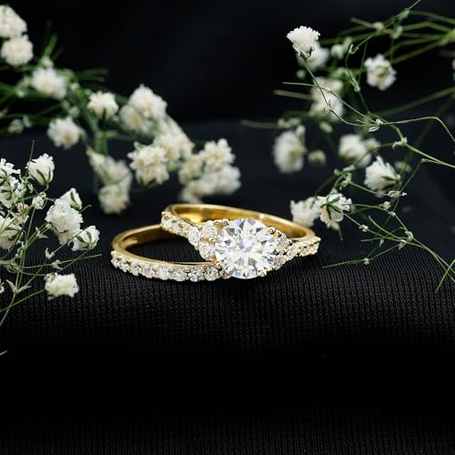 Ring size: 6.5Item width: 7.5 millimetersMaterial: 10K Solid Gold, MoissaniteMetal type: Yellow GoldGem type: MoissaniteItem type name: Wedding Ring SetsCommit to forever with this breathtaking Moissanite Wedding Ring Set, designed for those who believe in the magic of true love. The impeccable craftsmanship and unmatched brilliance of this Wedding Engagement Ring Set created a symbol of your unwavering commitment and endless affection.100% Natural and Certified Moissanite with faultless Sparkle - We make sure to select the best grade Moissanite for you which is D Color VS1 Clarity that brings out the stone's fire and brilliance at it's best.Quality Assurance- 10K Solid Gold; Moissanite Quality: D-vs1 ; Total Moissanite Carat : 4.38 (Approx.)Safe and Secure Packaging - All of our jewelry item arrives in high-end signature jewelry boxes, ensuring they are ready for proposals/gifting purposes so that you don't have to spend any time packing them. To assist you in avoiding unnecessary hassle, we provide our ring sizing kit to you.Shop with Confidence - Rosec Jewels assures you to get Peoples heads turned with our sparkling jewelry pieces which are authentically certified just for your peace of mind. sku:-RCRI0821236367 Perfect for everyday use. first-class materials and excellent craftsmanship ensure long-lasting durability.