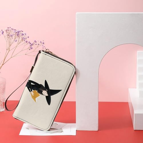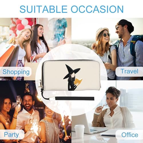 Witch Reading Minimalistic PU Leather Clutch Long Bifold Wallet, Coin Purse Credit Pass Case, long-lasting Card-Holder Money Storage for Women Men