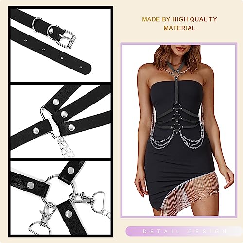 Goth Belt can be adjusted size freely with buckle,it can be changed according to the size of the thigh and WaistWomen leather punk belts is made of PU Faux leather,soft, durable,adjustable and easy to wearGoth belt comes in a vintage black design -layered chain,adds a little extra edge to so many different outfitsFashion Harness can be matched with your any daily outfit,such as T-Shirt,shirt, dress,you can spruce up your any style shirt and just the right touch to any outfit,it will complement the wardrobe womenLeather body belt is suitable for different occasions is the best choice for cool girls and ladies, you can wear it to various festivals as well as attending events such as halloween, rock concert costumes, cospaly, parties, clubs and more Perfect for everyday use. first-class materials and excellent craftsmanship ensure long-lasting durability.