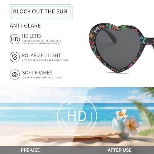 Heart Sunglasses for Women Heart Shaped Sunglasses Vintage Cat Eye Mod Style Retro Glasses Party Favor Polarized