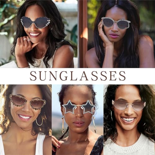 • Rimless star shape sunglasses for women,black frame embedded with sparkle clear rhinestones made of high-quality PC lenses,reinforced metal hinges, light and cushy,Integrated nose pad design can bring you a stress-no-cost wearing experience.