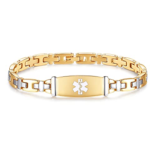 • vintage aristocratic lady style medical alert id bracelets Made of non-allergic 316L stainless steel!This cute style medical bracelets with 14k gold plating makes your wrist more eye-catching! sturdy and attractive,waterproof,Enough for you to handle any occasion!