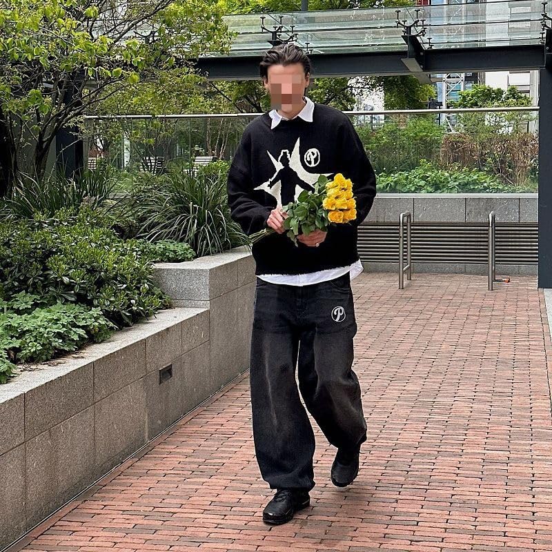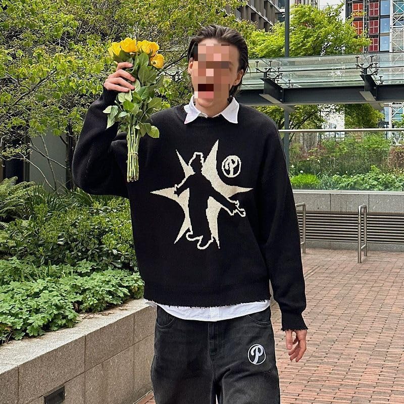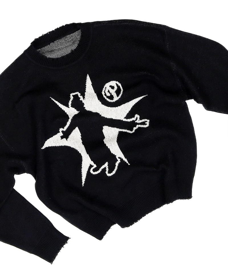 in-demand ! Men's Y2K Oversized Long Sleeved Sweater with Printed Retro Knit Sweater Pullover