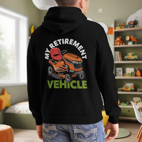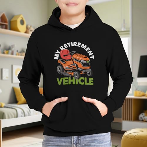 Kids Retro My Retirement Vehicle Funny Lawn Mower Boys Girls Lightweight Kangaroo Pocket Fleece Hoodies