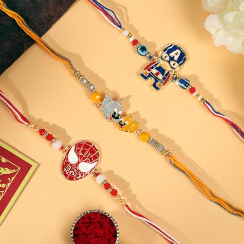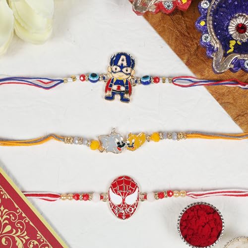 Set of 3 Three Assorted Design Rakhi for Brother Raksha Bandhan Fancy Rakhi for Bhaiya/Bhabhi/Siblings Rakshabandhan Special Rakhi for adore One