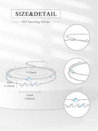 in-demand ! Wave/Sea Turtles/Dolphin Bracelet/Anklet 925 Sterling Silver Adjustable Moonstone Bracelet/Anklet Summer Ocean Jewelry Gifts for Women