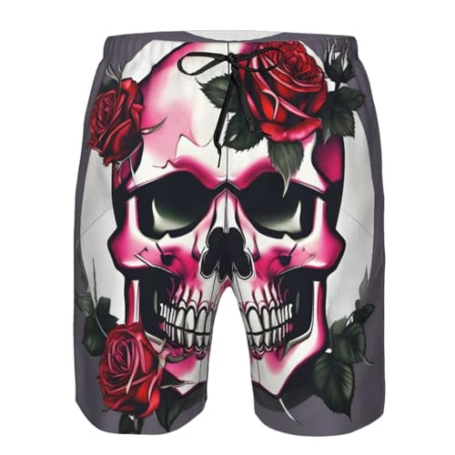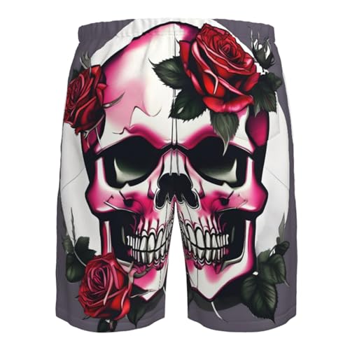 Men's Beach Shorts Swim TrunksFun Patterns Rose Skull Print for Surfing Running Summer Vacation