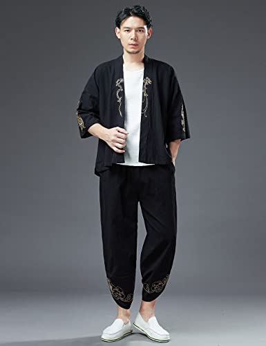 More information about Ystylee Men's 2 Piece Set Kimono Cardigan Suit Chinese Style Embroidered Hanfu Jacket Pants Set Open Front Top & Shorts