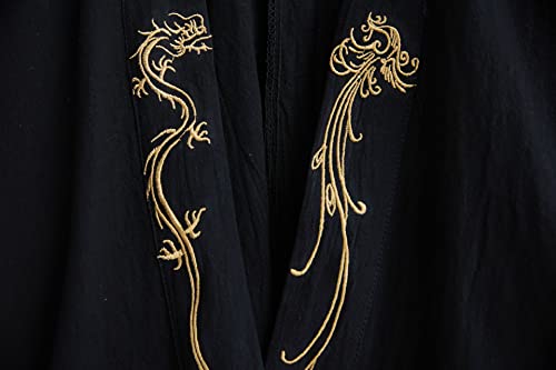 • Features:2 Piece Chinese Style Sets - Overshirt and Pants /3/4 Long Sleeves/ Open Front Collar / Slim Fit/ Chinese Dragon Embroidered Design/ PANTS:2 Side Slant Pockets / Elastic Waist with Adjustable Drawstring,Japanese kimono style.