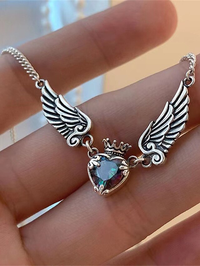 Highlights Women's Outdoor Heart Necklace Women's Outdoor Heart Necklace Description Highlights: [Material] : Crafted from high-quality alloy, this necklace offers a durable and lustrous finish, ensuring longevity and a charming shine that complements any outfit. [Style] : This striking necklace showcases a contemporary and modern design, perfect for fashion-forward individuals. Its outdoor style adds a unique and versatile charm, suitable for various occasions. [Design Highlights] : The necklace features a captivating heart-shaped pendant, elegantly embraced by intricately detailed angel wings. A multifaceted gemstone at the center adds a dazzling touch, while a regal crown above symbolizes grace and nobility. The artistic wing design gives an impression of delicate lightness, complemented by a sturdy and comfortable chain. [Occasions] : Ideal for daily wear, street outings, holidays, and weekend adventures, this necklace is a versatile accessory that adds elegance and symbolism of protection and love to any ensemble. [Size] : Available in one-size with a flexible length, designed to comfortably fit adults of various size preferences, ensuring a perfect fit for any wearer. This unique piece stands out as a perfect blend of elegance and whimsy, making it a cherished addition to any jewelry collection. Perfect for everyday use. first-class materials and excellent craftsmanship ensure long-lasting durability.