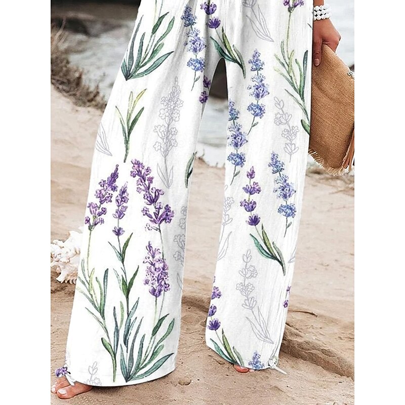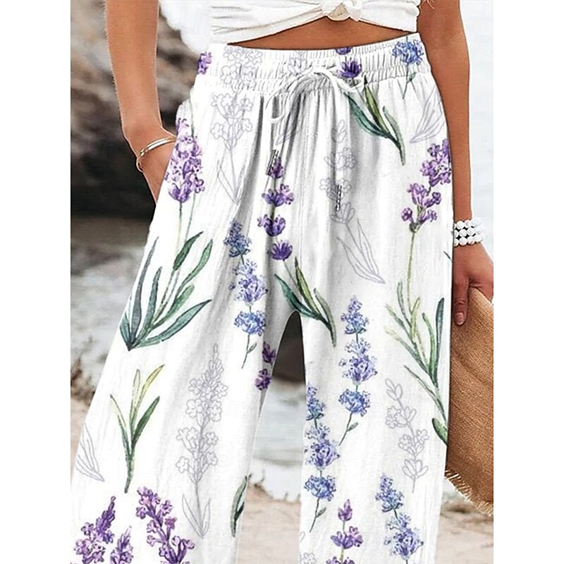 This Women's Wide Leg Baggy Pants Beach Shorts Vacation Vintage Fashion Full Length High Waist Graphic Flower / Floral Drawstring Printing velvety Breathable Micro-elastic Vacation Causal Casual White Blue combines elegant design with practical functionality. Every detail has been carefully considered to ensure you get the best possible experience. The top-grade construction means this product will serve you well for years to come.