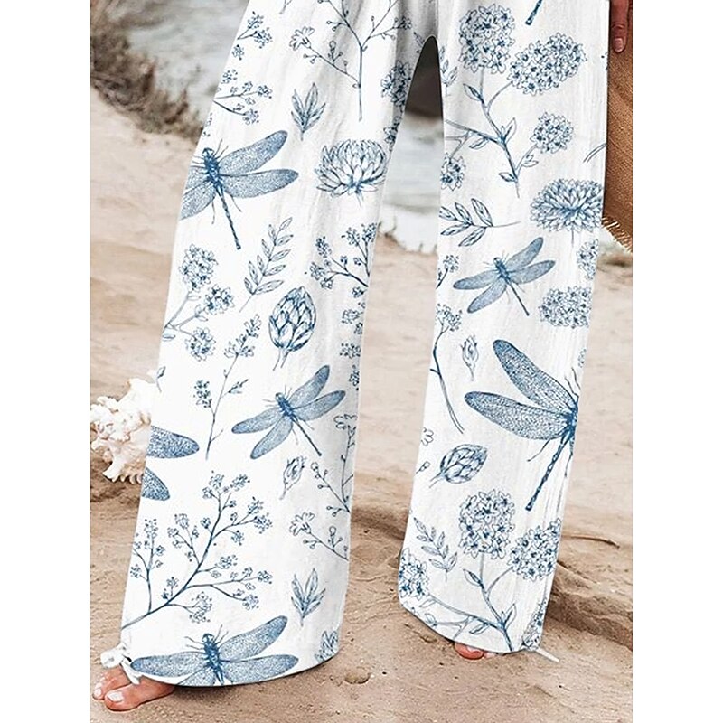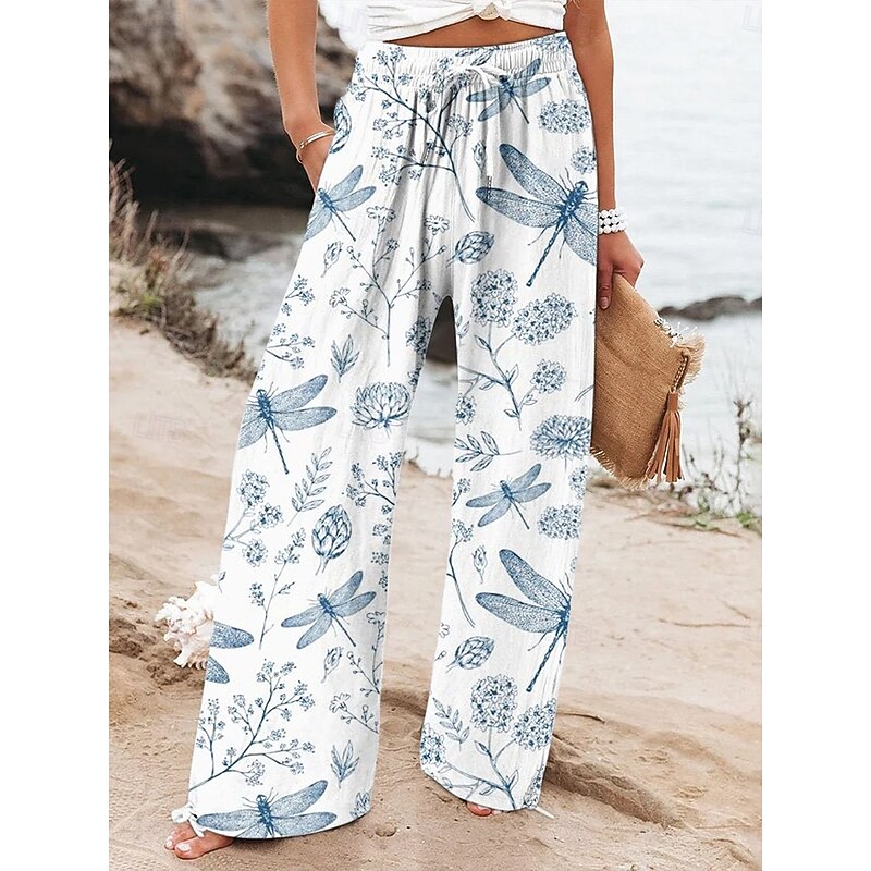 Why Choose Women's Wide Leg Baggy Pants Beach Shorts Vacation Vintage Fashion Full Length High Waist Graphic Flower / Floral Drawstring Printing velvety Breathable Micro-elastic Vacation Causal Casual White Blue?