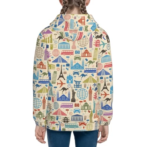 Famous Places Kids Pullover Hoodies Boys Zip Up Sweatshirts Girls Athletic Clothes with Pocket