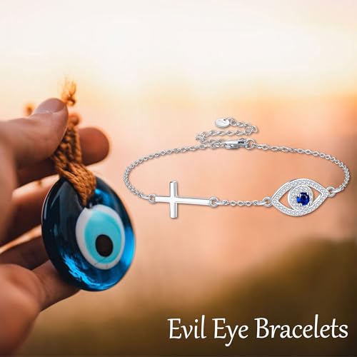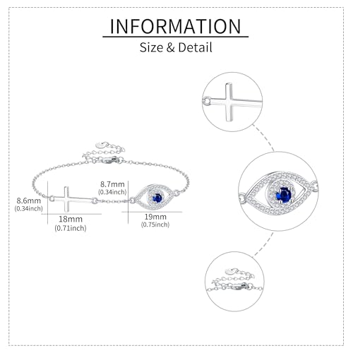 More information about Evil Eye Bracelet 925 Sterling Silver Cross Bracelet Blue Evil Eyes Link Bracelet for Women