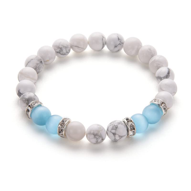 Material: Stone, CrystalMetal type: ZincChain type: Bead ChainGem type: No gemstoneItem type name: Stretch Bracelets♥Stress Relief Crystal bracelet:Classic and sophisticated look,you can wear these women mens bracelets with your other jewelry,give you different beauty.Also the bracelets are perfect couple beaded bracelets and friendship bracelets,share them with your close friends and love one.♥Adjustable size:Beads diameter:8mm,this bracelet is made with strong elastic string,comfortable to wear,suit for most people wrist.doubled for extra security.♥Material:Howlite and Rosa crystal,natural stone bead possess low density and light weight.adjustable design,The bracelets give you a different choose and feelings. Applicable:yoga bead bracelet,meditation bracelet,healing bracelet.Good matching for men and women.♥Meaningful Gifts:The bracelet set is suitable for any occasions, suitable for stress relief, meditate, yoga, daily wearing.A perfect gift for your family, friends, lover on birthday, anniversary, holidays, stocking stuffers, graduation, Christmas, valentine's day, friendship graduation.♥Quality Assurance: We offer a 30-day money-back guarantee for any reason, about quality-related issues give you 100% satisfaction. Any problems please feel free to contact us. Perfect for everyday use. first-class materials and excellent craftsmanship ensure long-lasting durability.