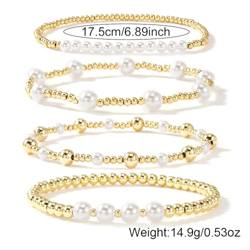 in-demand ! Dainty Gold Pearl Beaded Bracelet Stack for Women,4PCS Handmade Stretch Bohemian Gold Plated Beads Stackable Bracelets Trendy Prom Jewelry Gift Friendship