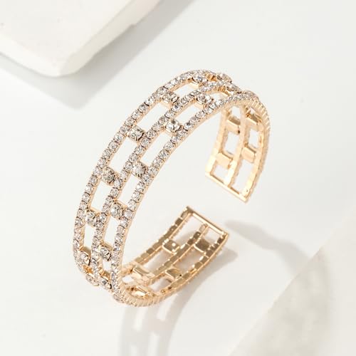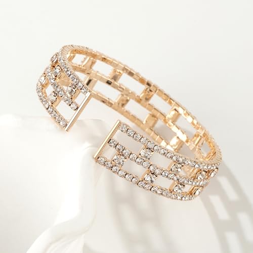 Sparkly Tennis Rhinestone Crystal Adjustable Wide Cuff Bracelet & Bangle for Women Bridal Wedding Party Prom