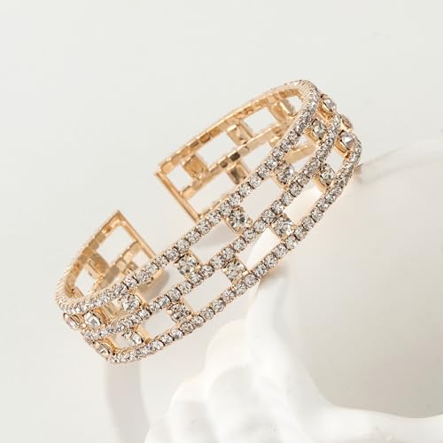 Material: Rhinestone, CopperMetal type: CopperClasp type: Hidden Safety ClaspChain type: Box ChainGem type: Rhinestone1.Adjustable Size:The PERIMETER of this cuff bracelet is about 6.5,It's open size design and suit for 6-7 small wrists.2.Features:Light-weight,High-shine,Cute Tennis Design.Silver & Gold Colors for Choose.3.Material:Sparkling Austria rhinestone.Thick gold & silver plated,not easy to fade.Professional quality material,Lead & nickel free and hypoallergenic.4.Measure:As the picture shown.Size:Adjustable,The bangle was strung with smooth copper sheet,It's easy to wear on and off.It can be fits for most of the women.5.Occasion:Suitable for casual wearing and dressy for Wedding, Engagement, Prom, Dinner Party, Birthday Party, Any Occasion You Want to Be More Charming.which is endowed with special significance. Perfect for everyday use. supreme materials and excellent craftsmanship ensure long-lasting durability.
