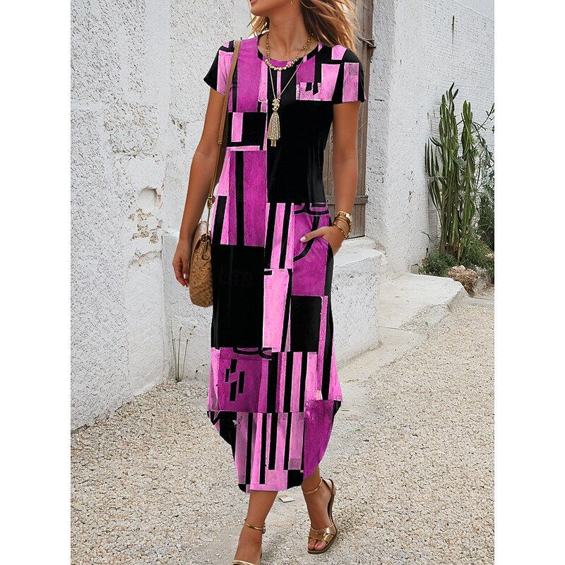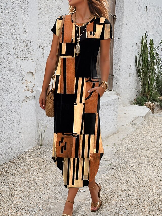 This Women's Midi Dress T Shirt Dress Tee Dress Summer Dress Vacation Casual Beach Daily Regular Fit Graphic Geometric Short Sleeve Crew Neck Blue Purple Brown Summer combines elegant design with practical functionality. Every detail has been carefully considered to ensure you get the top possible experience. The top-grade construction means this product will serve you well for years to come.