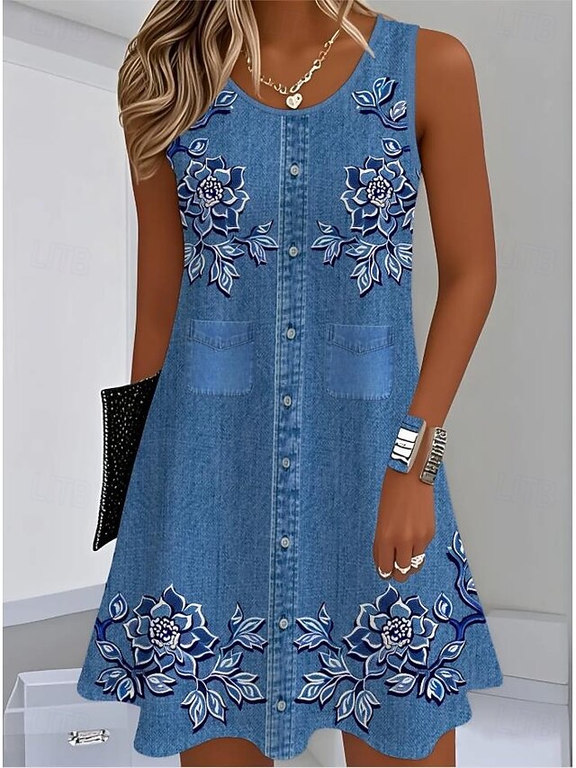 in-demand ! Women's Mini Dress Sundress A Line Dress Summer Dress Vacation Casual Daily Regular Fit Graphic Plain Sleeveless U Neck Blue Dark Blue Summer