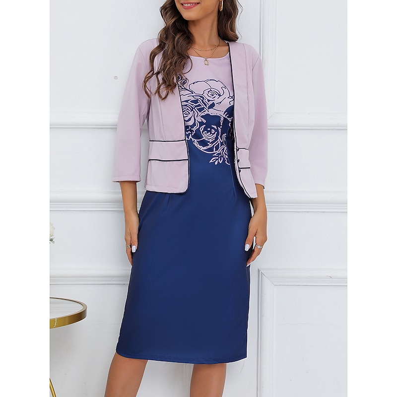 in-demand ! Women's Dress Set Two Piece Dress Floral Dress Midi Dress Purple 3/4 Length Sleeve Print Print Winter Fall Autumn Crew Neck Fashion Party Daily Wedding Guest 2023 S M L XL XXL 3XL