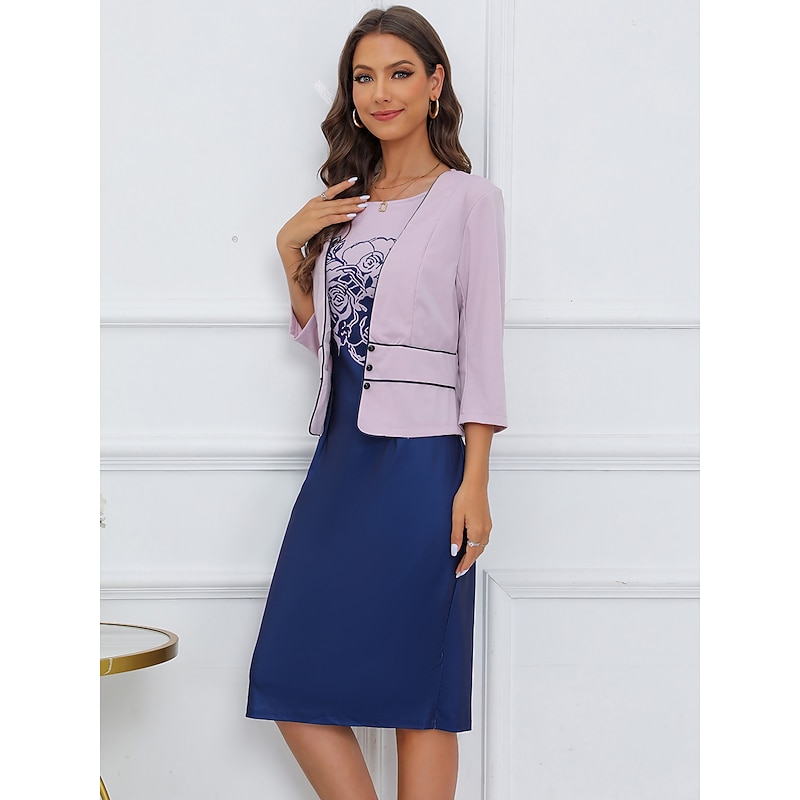 More information about Women's Dress Set Two Piece Dress Floral Dress Midi Dress Purple 3/4 Length Sleeve Print Print Winter Fall Autumn Crew Neck Fashion Party Daily Wedding Guest 2023 S M L XL XXL 3XL