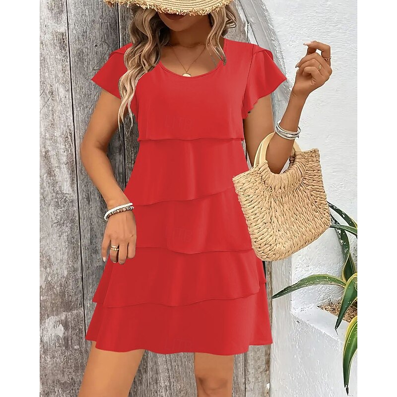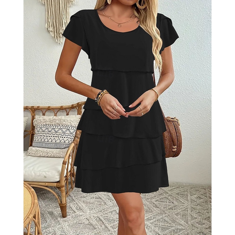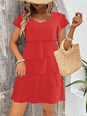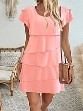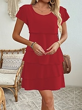in-demand ! Women's Mini Dress Chiffon Dress Fashion latest Daily Holiday Going out Regular Fit Plain Short Sleeve Crew Neck Black Pink Wine Red Summer