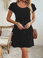 More information about Women's Mini Dress Chiffon Dress Fashion latest Daily Holiday Going out Regular Fit Plain Short Sleeve Crew Neck Black Pink Wine Red Summer