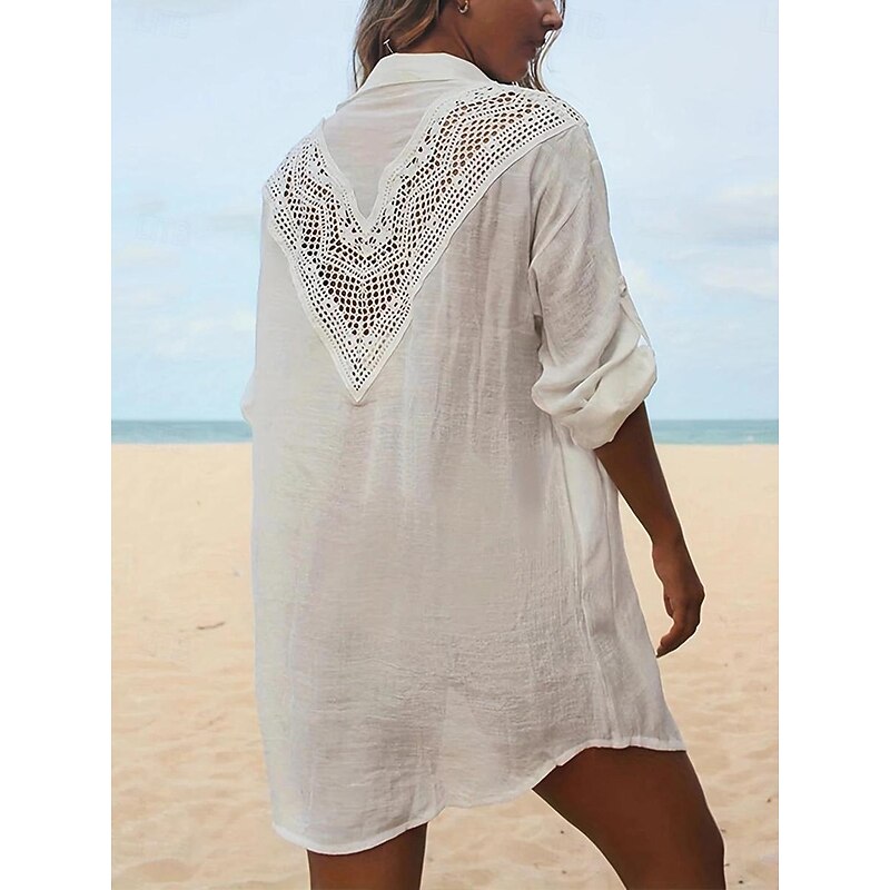 Why Choose Women's Mini Dress Linen-Inspired Dresses White Dress Shirt Dress Cover Up Hawaiian Vacation Holiday Beach Loose Fit Long Sleeve Shirt Collar Black White Summer?