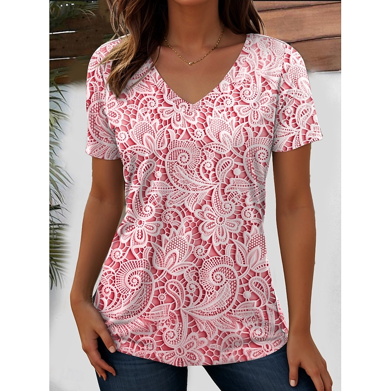 in-demand ! Women's T Shirt Floral Graphic Plants Vintage Fashion Hawaiian Short Sleeve V Neck Regular Tops Daily Going out Weekend Print Pink Blue Purple Green off-white Summer Spring