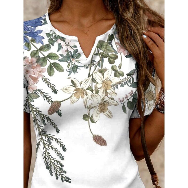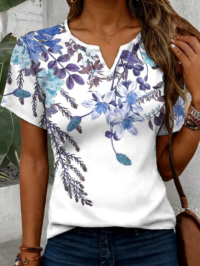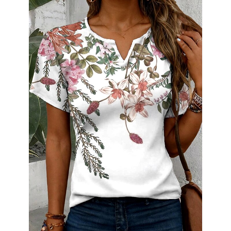 in-demand ! Women's T Shirt Ombre Floral Casual Short Sleeve Notched Neck Regular Tops Daily Print Light Green Pink Blue Summer Spring