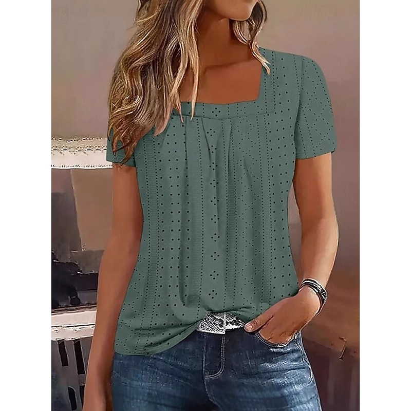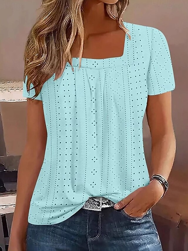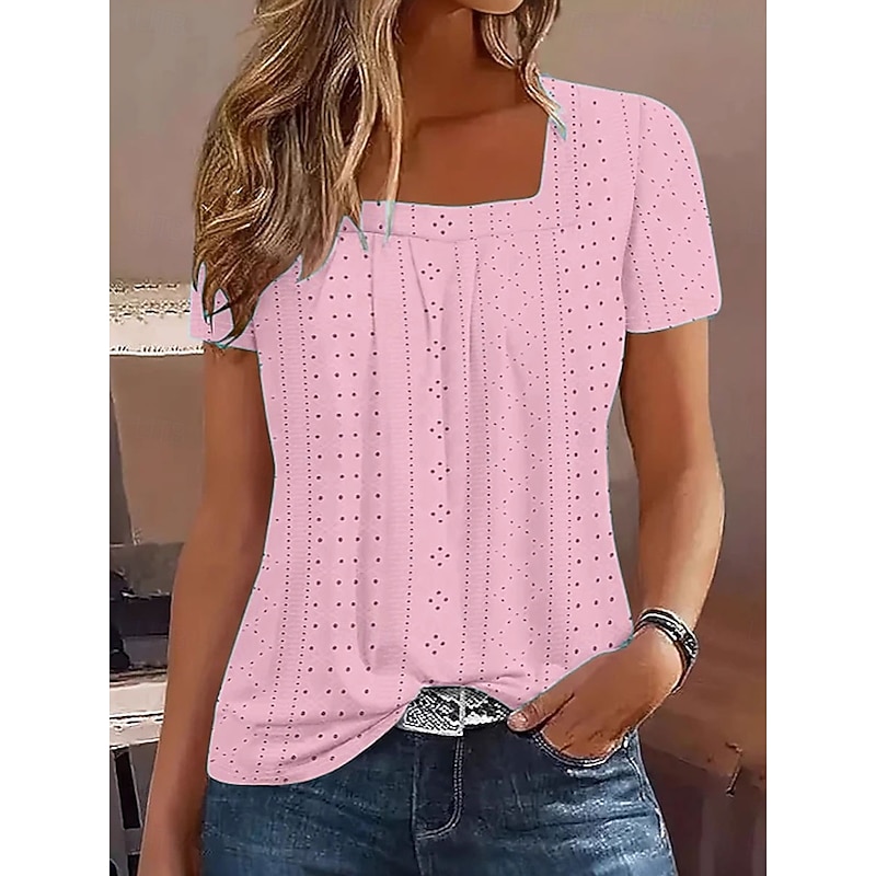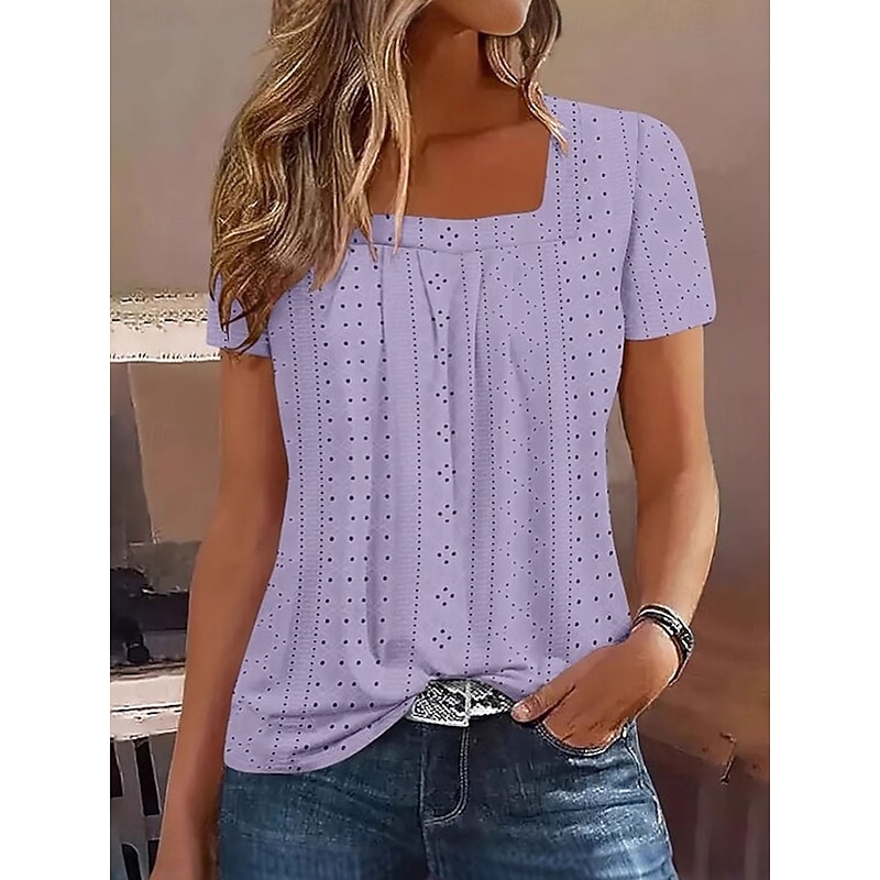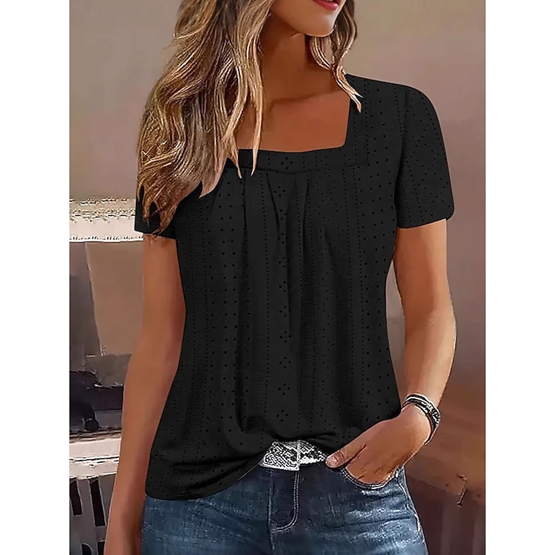 This Women's T Shirt Solid Color Elegant contemporary Basic Short Sleeve Square Neck Regular Tops Daily Black White Pink Blue Purple Summer Spring combines elegant design with practical functionality. Every detail has been carefully considered to ensure you get the best possible experience. The top-grade construction means this product will serve you well for years to come.