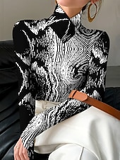 This Women's T Shirt Graphic Marble Elegant Vintage fashionable Long Sleeve Turtleneck High Neck Asymmetric Neck Regular Tops Daily Print Black and White Spring Fall Winter combines elegant design with practical functionality. Every detail has been carefully considered to ensure you get the best possible experience. The finest construction means this product will serve you well for years to come.