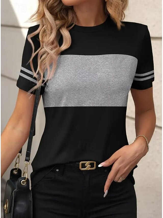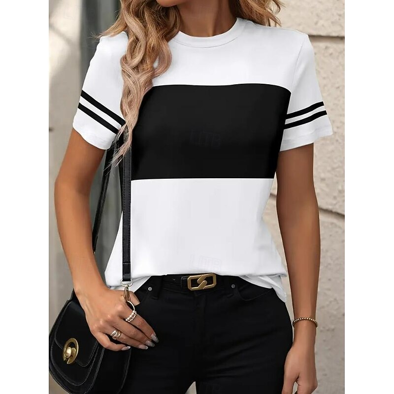 This Women's T Shirt Striped Casual Short Sleeve Round Neck Regular Tops Daily Going out Weekend Print Black White Summer combines elegant design with practical functionality. Every detail has been carefully considered to ensure you get the top possible experience. The top-grade construction means this product will serve you well for years to come.
