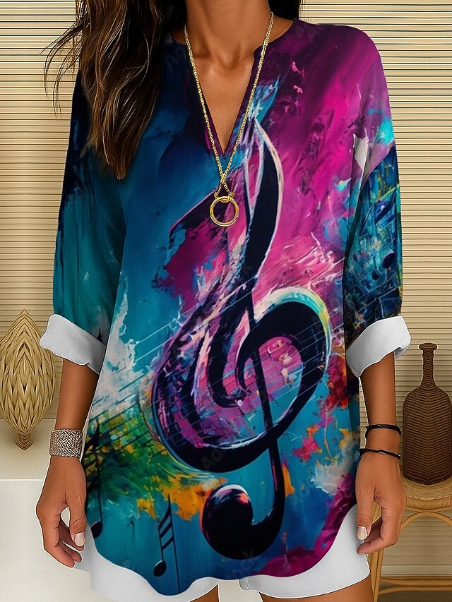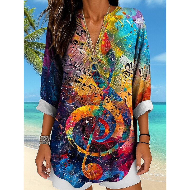 Why Choose Music Festival Women's Blouse Ombre Graphic Geometric Elegant Vintage Tropical Long Sleeve V Neck Regular Tops Daily Holiday Print Yellow Red Purple Summer Spring?