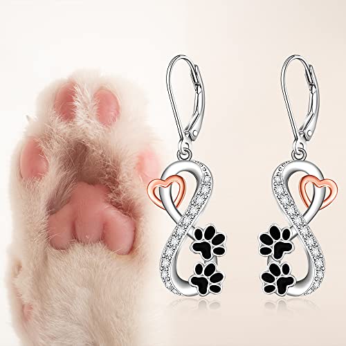 in-demand ! Paw Print Earrings for Women Sterling Silver Infinity Cute Animal Pawprint Dangle Drop Hypoallergenic Cat Dog Paw Earrings Jewelry Gifts