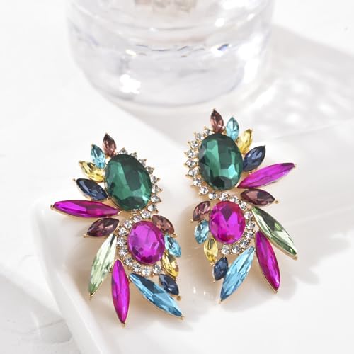 Vintage Rhinestone Statement Earrings Fancy Crystal Cluster Drop Dangle Earrings for Women