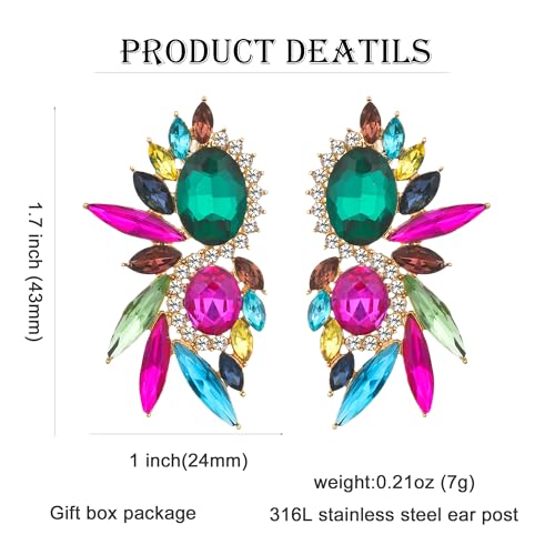 Material: Glass, Rhinestone, ZincMetal type: ZincBack Finding: Snap BackEarring design: DangleGem type: Created QuartzHypoallergenic Rhinestone Statement Earrings:Made of first-class alloy and sparkling rhinestone,no lead, cadmium, or nickel.Stainless steel post back for sensitive pierced ears.Vintage Crystal Cluster Drop Earrings Size: Length: 4.5cm(1.8in), Width: 2.5cm(1in), Each Earring Weight: 7g(0.21oz)/pce.Retro Crystal Statement Earrings:exceptional design.Studded with dazzling crystal stones for an eye-catching sparkle, this spunky dangle earring will be sure to grab everyone's attention wherever you go! Delicate drop earrings will be the perfect addition to an everyday outfit or evening dress. Make you glamorous, elegant and charming.Daily Wear or Special Occasions:Elegent rhinestone statement dangle earrings are suitable for different occasions,such as dancing party, wedding,ceremonies, banquet,soriee,bar,festival evening dinner,birthday party, prom, feast,ball, engagement, anniversary, festival celebration,Chirstas and any other special occasions. Great gift for your wife, mom, daughter,bridal,bridesmaid and friends.Excellent customer service:Any problem.please contact us.We will try our best ot solve it till you are satisfied. Perfect for everyday use. High quality materials and excellent craftsmanship ensure long-lasting durability.