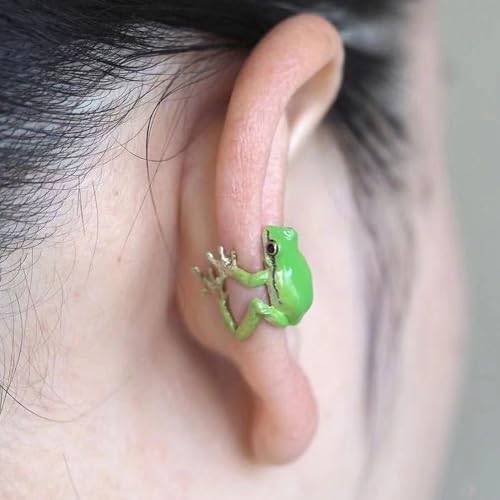 Cute Frog Ear Cuff Earrings for Women Green Vintage Frog Lizard Wrap Crawler Earrings No Piercing Weird Animal Ear Cuff for Women Jewelry