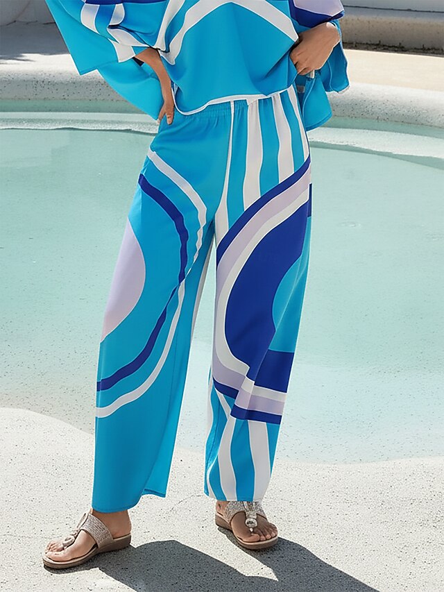 $72.99 - Women's Satin Wide Leg Pants Geometric Colorblock Placement Print Elastic Waist Casual Vacation Spring Fall 2025. Shop for cheap Women's Pants online? Buy at lightinthebox.com on sale today!